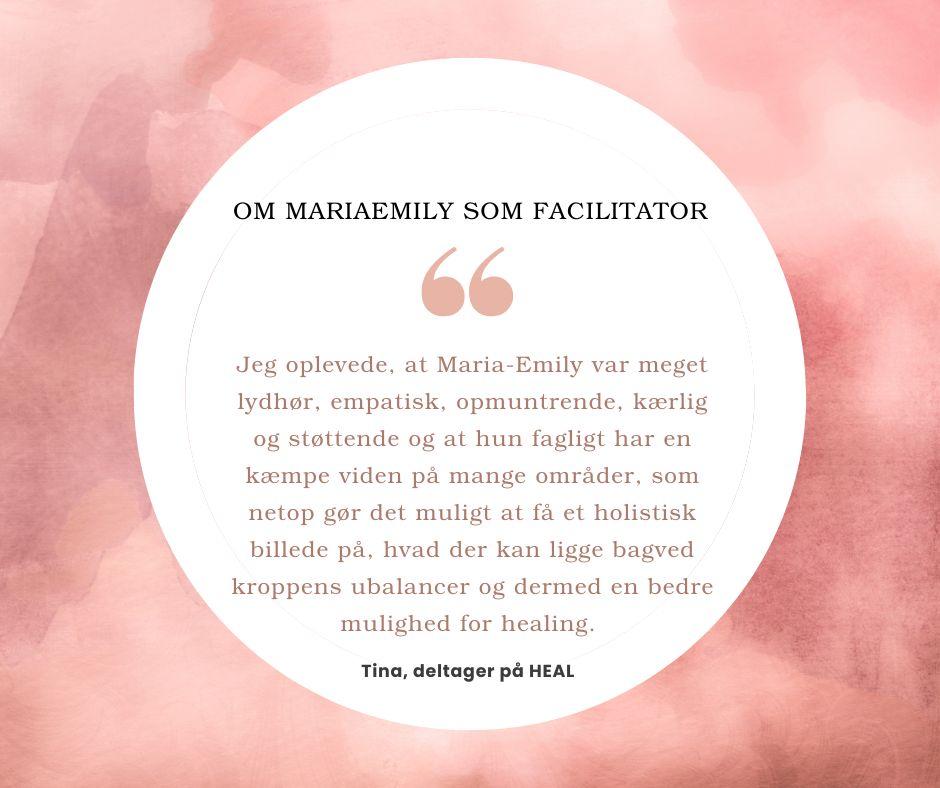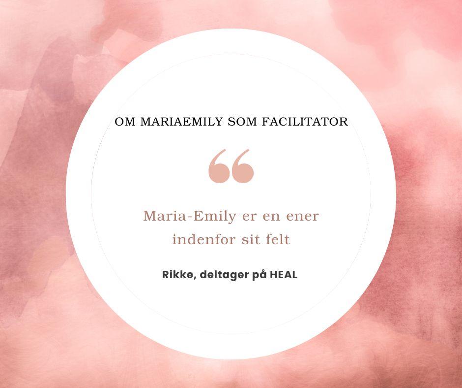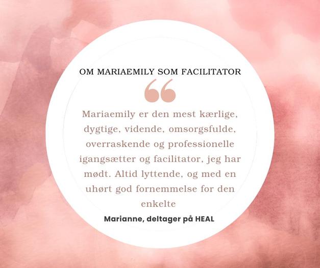 Kommer der nye til cirklen vil de ugentlige lives med Maria-Emily fortsætte, så du kan fortsætte din rejse, mødes med de andre og forblive en del af HEAL fællesskabet.